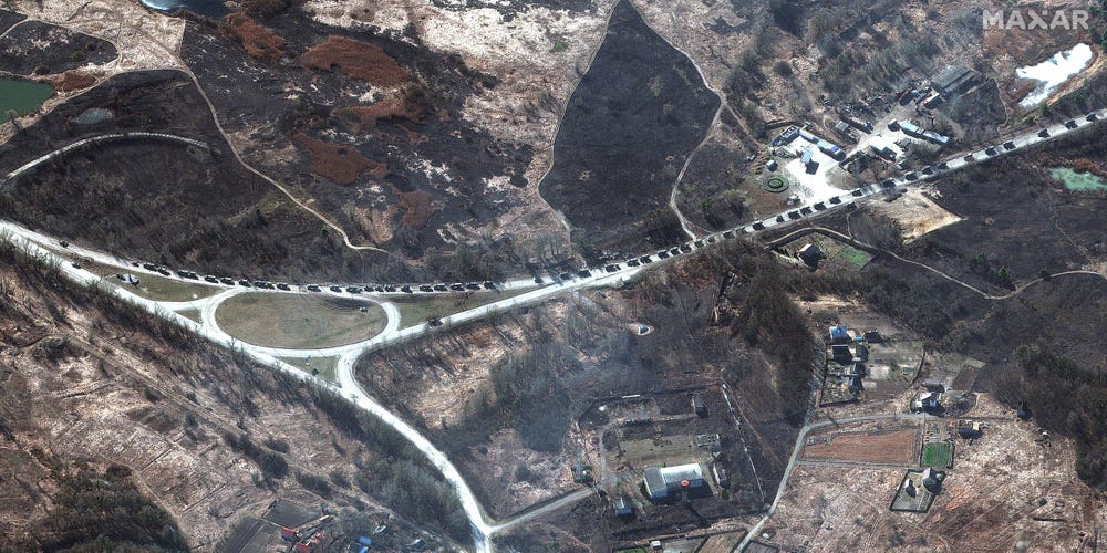 Σε κάθε πόλεμο, κάποιες εικόνες γίνονται εμβληματικές. Μέχρι στιγμής στον πόλεμο της Ουκρανίας, οι δορυφορικές φωτογραφίες MAXAR από ρωσικά οχήματα που παρατάσσονται για «40 μίλια» κατά μήκος των αυτοκινητοδρόμων PO2, T1019 και T1011 βόρεια του αεροδρομίου Hostomel, έξω από την ουκρανική πρωτεύουσα του Κιέβου, έχουν γίνει πρωτοσέλιδα σε όλο τον κόσμο.