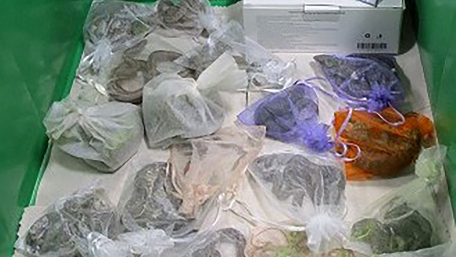 Ο λαθρέμπορος είχε κλείσει τα ερπετά – εννιά φίδια και 43 κερασφόρες σαύρες – σε πλαστικά σακουλάκια και τα είχε κρύψει «κάτω από τη ζακέτα του, στις τσέπες του παντελονιού του και στο ύψος του… καβάλου», εξήγησαν οι τελωνειακές αρχές των ΗΠΑ.