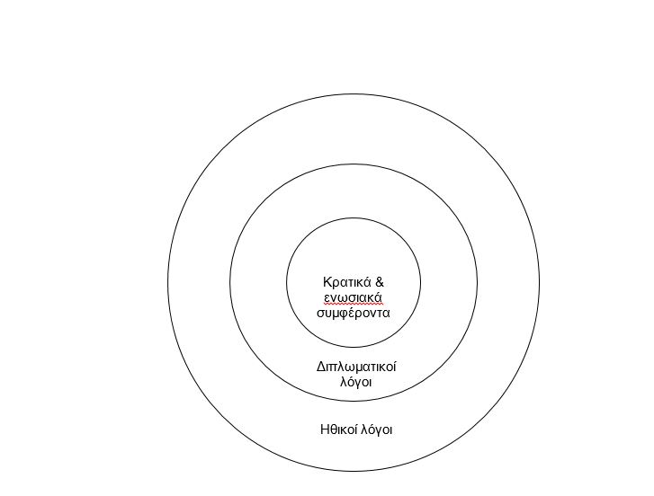 Ποιοι ήταν κάποιοι από τους λόγους που την οδήγησαν σε αυτή την αλλαγή στάσης σε σύγκριση με τη διαχείριση των προσφυγικών ροών το 2015-2016; Στο παρακάτω σχήμα παρουσιάζονται τρία είδη κινήτρων της ΕΕ, τα κρατικά και ενωσιακά συμφέροντα, οι διπλωματικοί και τέλος οι ηθικοί λόγοι.