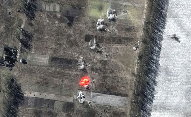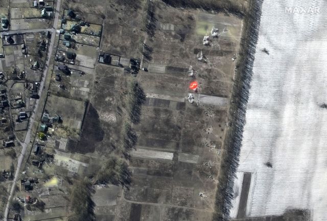 Δορυφορικές φωτογραφίες που τραβήχτηκαν χθες, Παρασκευή, δείχνουν ότι ρωσικές στρατιωτικές δυνάμεις συνεχίζουν την ανάπτυξή τους πιο κοντά στο Κίεβο, ενώ μοίρες πυροβολικού βάλλουν εναντίον κατοικημένων περιοχών, σύμφωνα με την αμερικανική ιδιωτική εταιρεία Maxar Technologies.