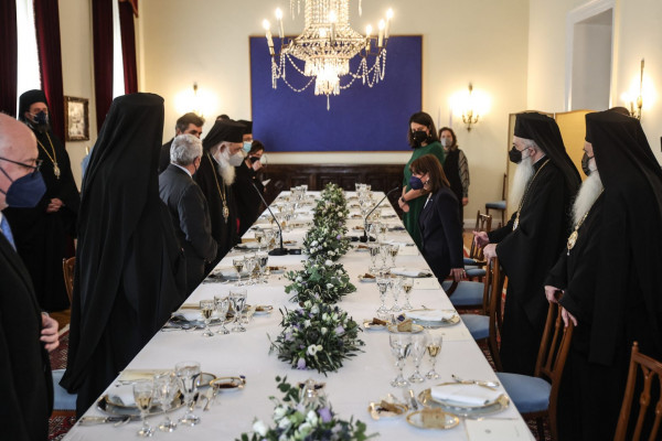 Γεύμα στο Προεδρικό Μέγαρο προς τιμήν του Ιερώνυμου και των μελών της Ιεράς Συνόδου παρέθεσε η Πρόεδρος της Δημοκρατίας