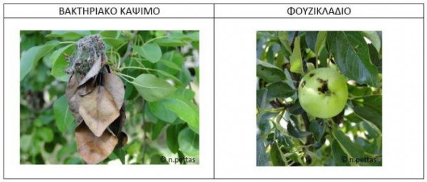 Προσβολές από φουζικλάδι, ωϊδιο, βακτηριακό κάψιμο, κόκκινο τετράνυχο, αφίδες και ψύλλα παρουσιάζονται σε μηλιές και αχλαδιές. Οι προσβολές εκδηλώνονται σε όλα τα μέρη του άνθους, στους καρπούς, στα φύλλα, στους μίσχους, στους ποδίσκους και πιο σπάνια στα πράσινα κλαδιά και τα λέπια των οφθαλμών.