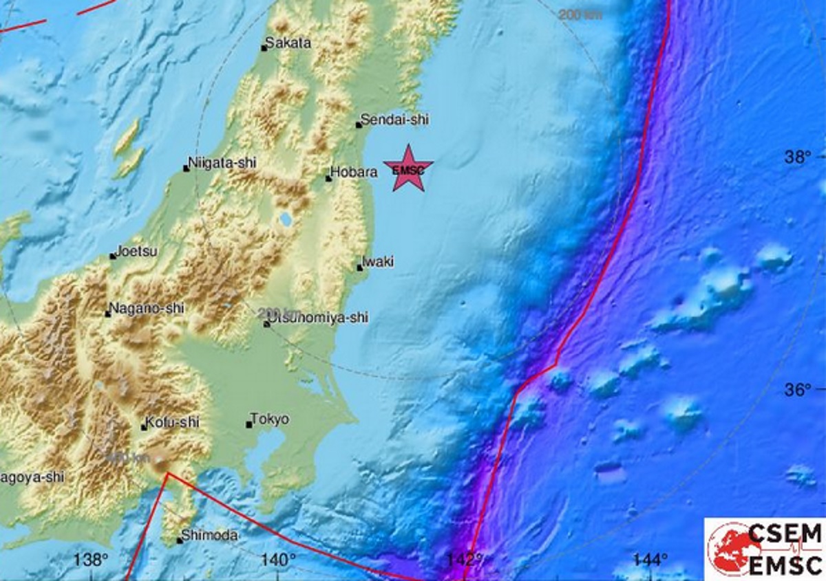 Σύμφωνα με το Ευρωμεσογειακό σεισμολογικό κέντρο ο σεισμός ήταν μεγέθους 7,5 βαθμών και σημειώθηκε 63 χιλιόμετρα από το Σεντάι της Ιαπωνίας.
