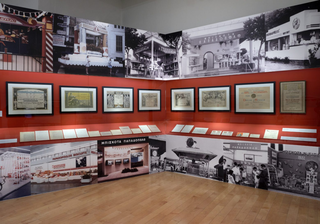 Λογότυπα, αφισέτα, κινηματογραφικές και τηλεοπτικές διαφημίσεις, συσκευασίες (πολύ) περασμένων δεκαετιών, «σκαλιέρες» μπισκότων και φωτογραφίες από παντοπωλεία άλλων εποχών καταλάμβαναν τον επόμενο χώρο της επετειακής έκθεσης. Έργο της Κατερίνας Βατμανίδου, αδερφής της συζύγου του ιδρυτή της εταιρείας, Ευάγγελου Παπαδόπουλου, το πλούσιο ιστορικό αρχείο της εταιρείας είχε αρχίσει να ξεδιπλώνεται. Και ήδη μας γινόταν σαφές ότι ήταν ένα παράδειγμά που θα έπρεπε να ακολουθήσουν και οι υπόλοιπες ελληνικές επιχειρήσεις αυτού του βεληνεκούς, αφού στις σελίδες και τα αντικείμενά του κρύβεται ένας πραγματικός θησαυρός γνώσης που ξεπερνά κατά πολύ τα όρια της ίδιας της εταιρείας.