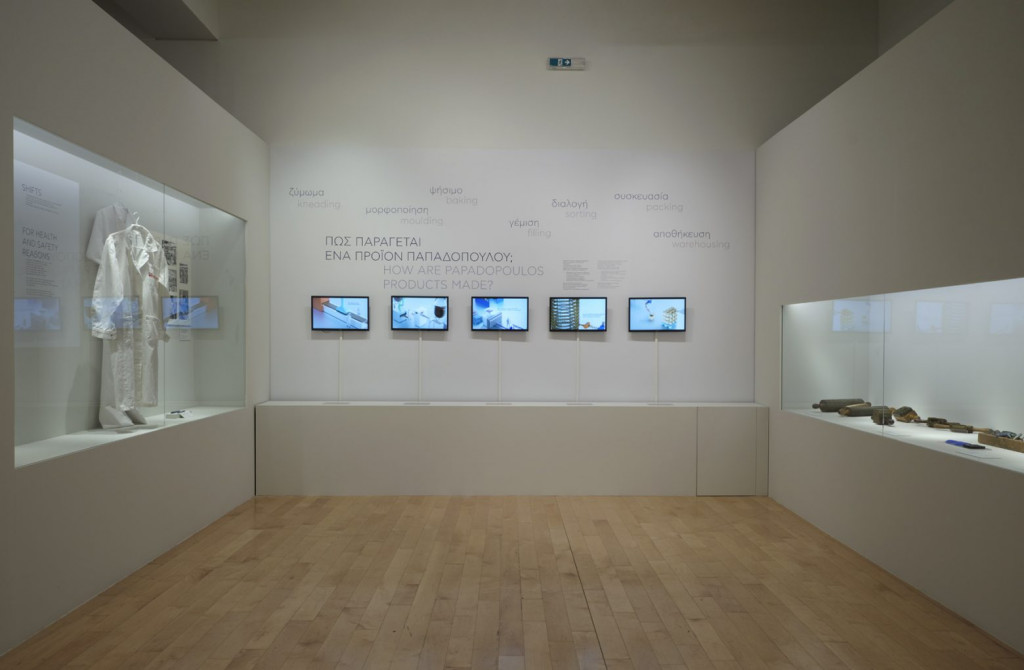 Στα μπισκότα, αλλά και τα ψωμιά και τα αρτοσκευάσματα που έχουν προστεθεί στους περισσότερους από 600 σημερινούς κωδικούς της εταιρείας, και τα οποία παρήλαυναν γύρω μας σε κάθε τους μορφή. Στις καλλιτεχνικές φωτογραφικές αποτυπώσεις των υπερσύγχρονων γραμμών παραγωγής των τεσσάρων εργοστασίων της βιομηχανίας, από τον φακό του Νίκου Μάρκου. Στα μοναδικά animations του Χριστόφορου Μπρελλή και τη μεγάλη, λειτουργική μακέτα που μας παρουσίαζαν, με τρόπο απολαυστικό, καρέ-καρέ την διαδικασία της παραγωγής – όπως και τα πραγματικά πλάνα από το εσωτερικό εργοστασίου που προβάλλονταν σε ολόκληρο τον τοίχο της ενότητας. Γύρω τους, ένας ζυμωτήριο του ’30 και άλλα μηχανήματα περασμένων εποχών, μας επέτρεπαν να θαυμάσουμε τα τεχνολογικά άλματα των καιρών μας.