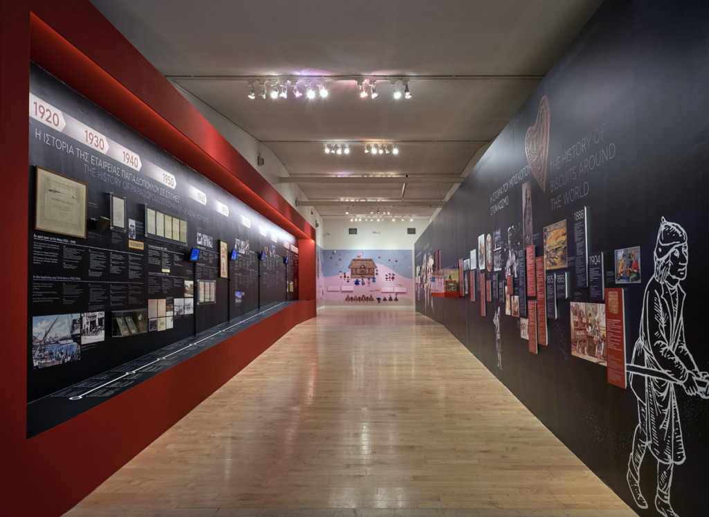 Η αγάπη της οικογένειας για το μπισκότο αποτυπωνόταν με ενάργεια στην επόμενη ενότητα της έκθεσης, όπου σε έναν εντυπωσιακά διαμορφωμένο διάδρομο ο επισκέπτης είχε την ευκαιρία να έρθει σε επαφή με έναν απίστευτο όγκο σημαντικών πληροφοριών. Στην αριστερή πλευρά, μια αντιπαραβολή της ιστορίας της εταιρείας με εκείνη της Ελλάδας, μας βοήθησε να κατανοήσουμε καλύτερα το κοινωνικό, πολιτικό και οικονομικό περιβάλλον εντός του οποίου θεμελιώθηκε η βιομηχανία, συνοδεία σημαντικών ιστορικών τεκμηρίων και φωτογραφιών. Στα δεξιά, πρωταγωνιστής ήταν – τι άλλο; – το μπισκότο και τα δικά του βήματα στις χιλιετίες. Εκεί είχαμε τη σπάνια ευκαιρία να θαυμάσουμε συσκευασίες του αγαπημένου μας γλυκίσματος από όλο τον κόσμο, αλλά και δυο πραγματικά ξεχωριστά μπισκότα που διασώθηκαν από τα ναυάγια του Τιτανικού και του Λουζιτάνια, από την προσωπική συλλογή της κ. Παπαδοπούλου.