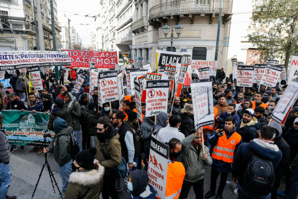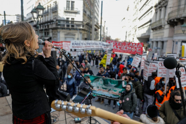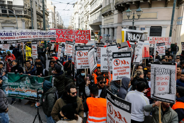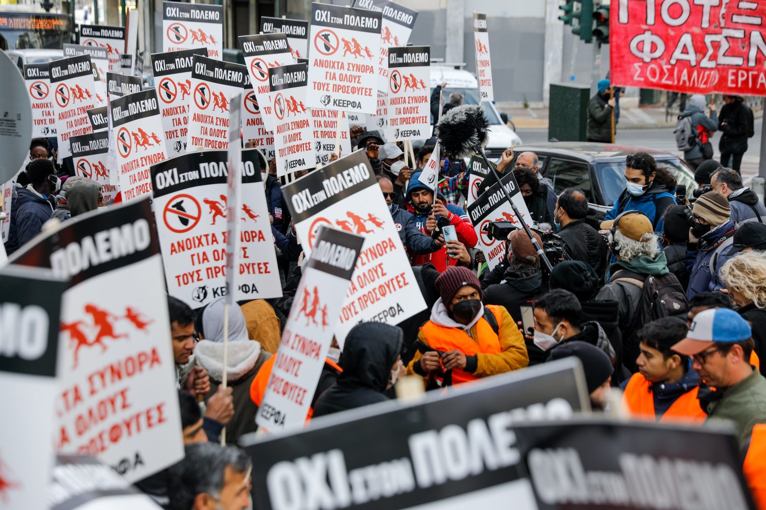 Σε εξέλιξη βρίσκεται αντιπολεμικό-αντιρατσιστικό συλλαλητήριο στο κέντρο της Αθήνας, στον απόηχο του πολέμου στην Ουκρανία.