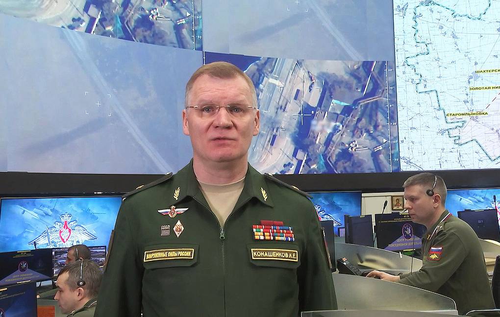 «Οι ρωσικές δυνάμεις ολοκληρώνουν την ήττα του εθνικιστικού τάγματος του Ντονμπάς και έχουν προχωρήσει άλλα 12 χιλιόμετρα κατά τη διάρκεια της ειδικής στρατιωτικής επιχείρησης στην Ουκρανία», δήλωσε την Κυριακή ο εκπρόσωπος του ρωσικού υπουργείου Άμυνας Ιγκόρ Κονασένκοφ. Οι Ρώσοι αναφέρονται στις πολεμικές επιχειρήσεις στην Ουκρανία ως «ειδική στρατιωτική επιχείρηση».