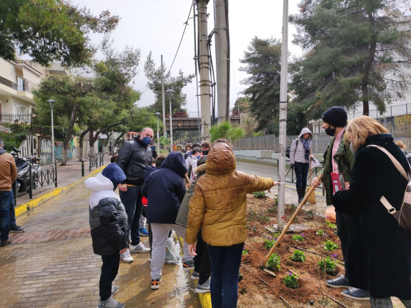 Ηράκλειο: Μαθητές έσκαψαν και φύτευσαν σε νησίδα λουλούδια