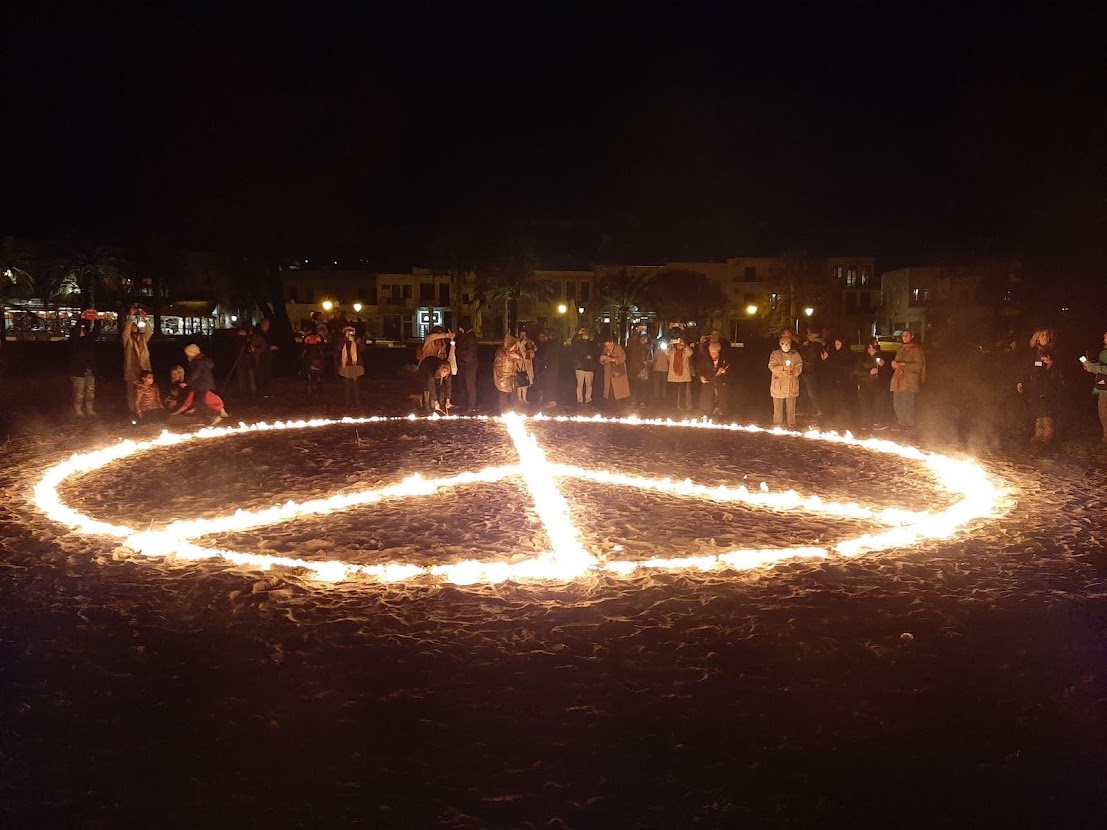 Έτσι, λοιπόν οι Ρεθυμνιώτες όλων των ηλικιών μαζί με μέλη του Δημοτικού Συμβουλίου, του Δικτύου ΡΕΘελοντώ και του Συλλόγου Ενεργών Πολιτών Ρεθύμνου-Σύνπολις, συγκεντρώθηκαν σε τρία διαφορετικά σημεία της πόλης (Λύκειο Ελληνίδων, Πλατεία Αγνώστου Στρατιώτη, Πλατεία Αγίου Γεωργίου) και άναψαν συμβολικά ένα κεράκι για την ΕΙΡΗΝΗ. Ταυτόχρονα, στην παραλία του Ρεθύμνου στο ύψος του παλιού Λαβύρινθου, σχημάτισαν με κεριά το σήμα της ΕΙΡΗΝΗΣ, δίνοντας το δικό τους μήνυμα κατά του πολέμου και υπέρ της ανθρώπινης ζωής και αξιοπρέπειας.