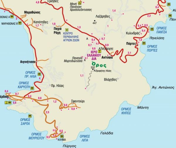 Όσοι πάλι αγαπούν τις πεζοπορικές διαδρομές μπορούν να ακολουθήσουν το μονοπάτι που οδηγεί στην κορυφή του Ελλάνιου όρους, σε υψόμετρο 532.