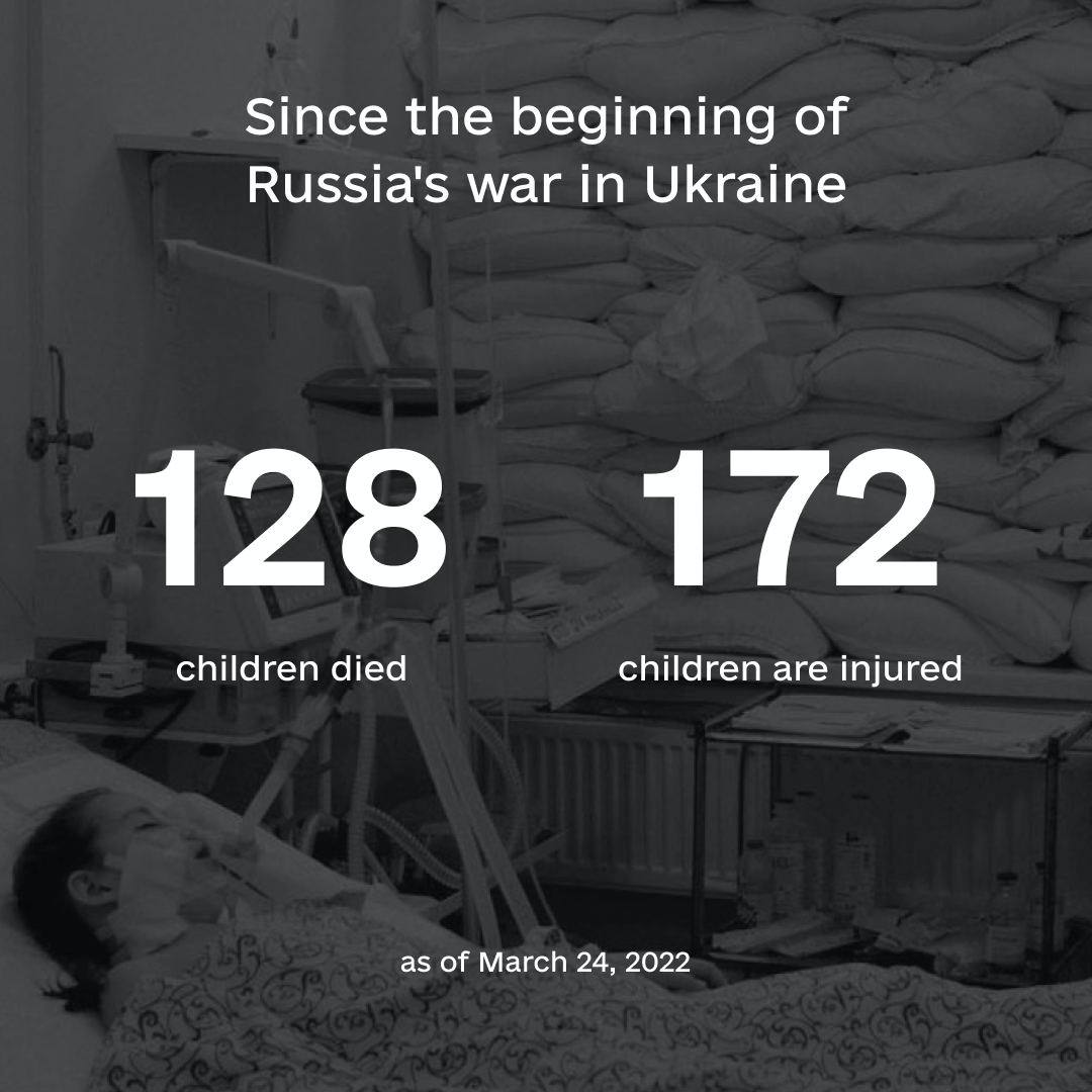 Να σημειώσουμε ότι το Κίεβο ανεβάζει αυτούς τους αριθμούς σε 128 νεκρά και 172 τραυματισμένα παιδιά, σύμφωνα με τη δική του καταγραφή, η οποία σημειώνει δεν είναι ολοκληρωμένη λόγω των συνθηκών.