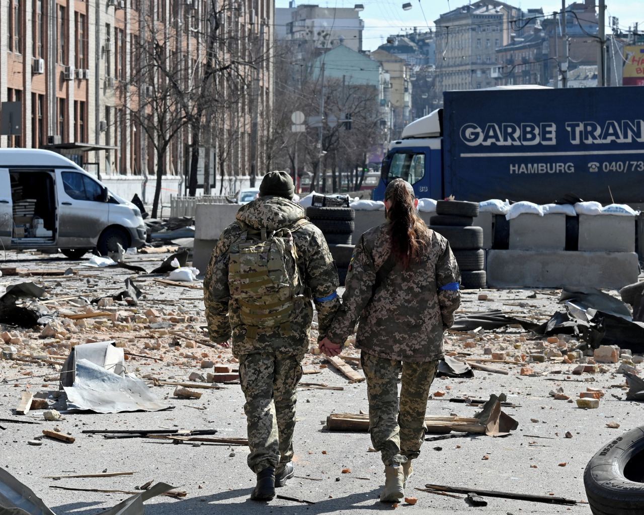 Ο Ουκρανός πρόεδρος, όπως συνηθίζει τις τελευταίες ημέρες, αξιοποίησε και φωτογραφίες από διάφορους φωτορεπόρτερ για να ενισχύσει το μήνυμά του.