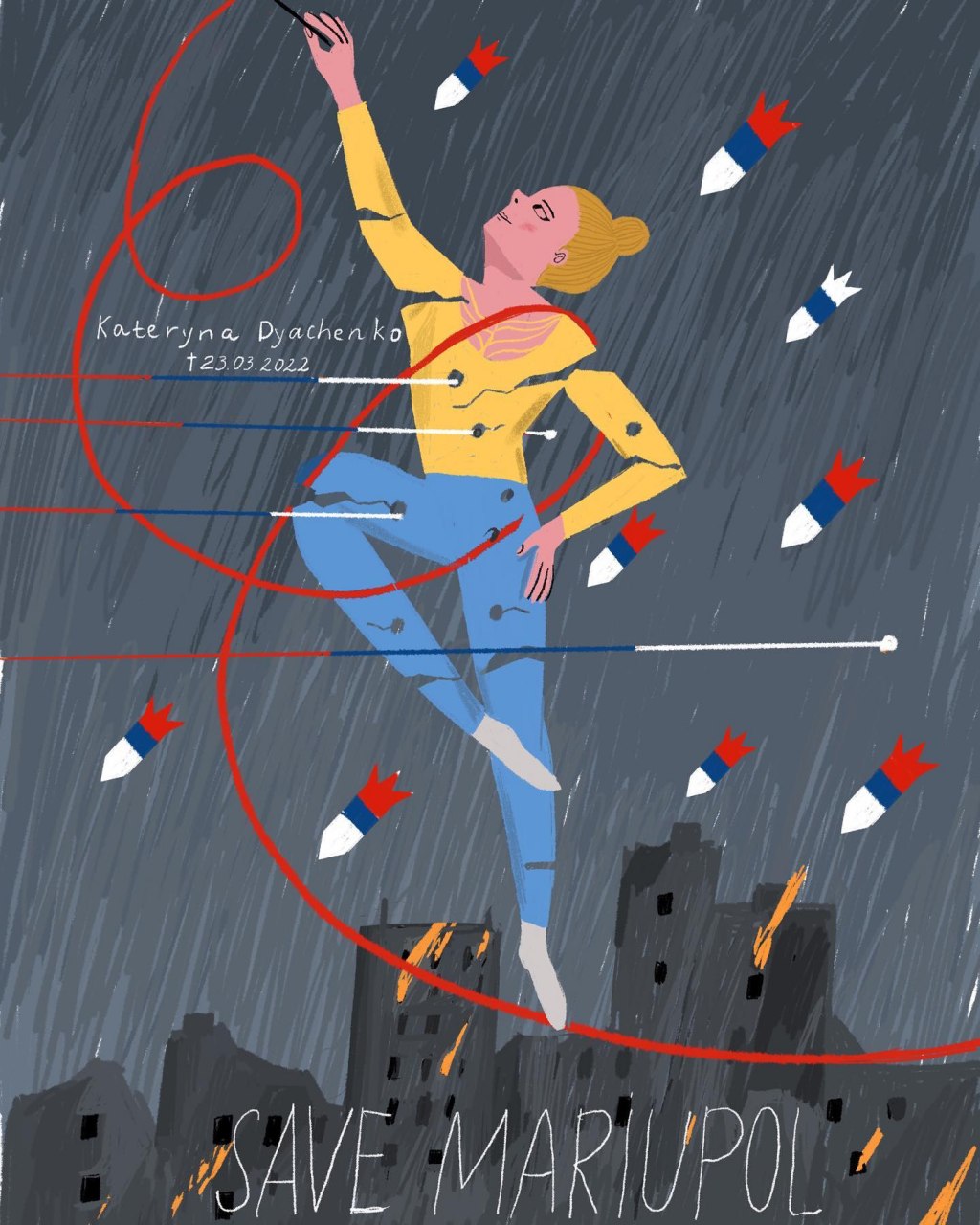 Η Ουκρανή δημιουργός επιχείρησε να αποτυπώσει τη φρίκη στη Μαριούπολη, την εκκένωση των πόλεων λόγω των βομβαρδισμών, τους θανάτους των παιδιών και τις προσευχές που κάνουν οι κάτοικοι της χώρας, πολλοί από τους οποίους έγιναν πρόσφυγες, για να σταματήσει η τραγωδία.