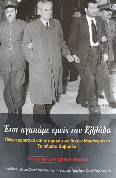 Η σημαντική έκδοση αυτή, με τίτλο Έτσι αγαπάμε εμείς την Ελλάδα. Πλήρη πρακτικά και ιστορικό των δικών Μπελογιάννη. Τα σήματα Βαβούδη (Εκδόσεις Τόπος, τρίτη εμπλουτισμένη έκδοση 2022) περιλαμβάνει το σύνολο των πρακτικών των δύο δικών Μπελογιάννη, το πλήρες δικαστικό ιστορικό της υπόθεσης, το σύνολο των «σημάτων Βαβούδη» που έχουν μπορέσει να συγκεντρωθούν, βιογραφικά των προσώπων που αναφέρονται.