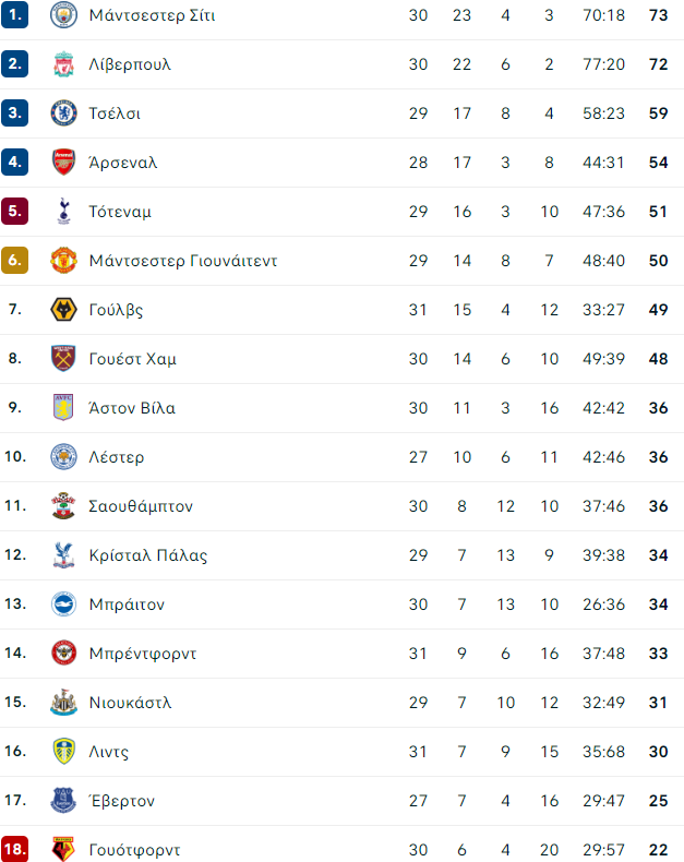 Ξανά πρώτη η Σίτι- Η «μάχη» τίτλου με τη Λίβερπουλ
