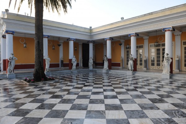 Στους εξωτερικούς χώρους και στον υπέροχο κήπο του ανακτόρου δεσπόζουν τα αγάλματα των εννέα Μουσών, του «Αχιλλέως Θνήσκοντος» και του «Αχιλλέως Νικώντος».