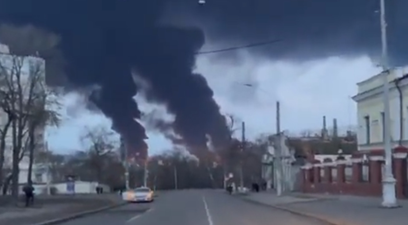 A missile strike on an oil refinery in Odessa, Ukraine.