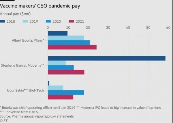 Τα μεγάλα κέρδη των επικεφαλής φαρμακευτικών είχαν προκαλέσει τότε μεγάλες αντιδράσεις από πολιτικούς και όχι μόνο. Ταυτόχρονα, τα εμβόλια έσωσαν εκατομμύρια ζωές από τον Covid-19 και προσέλκυσαν το ενδιαφέρον των επενδυτών για τις μετοχές φαρμακευτικών που τα κατασκεύασαν, οδηγώντας σε μεγάλη άνοδο της τιμής τους.