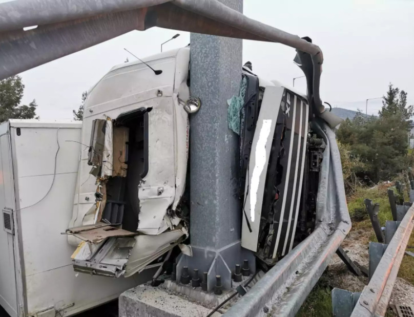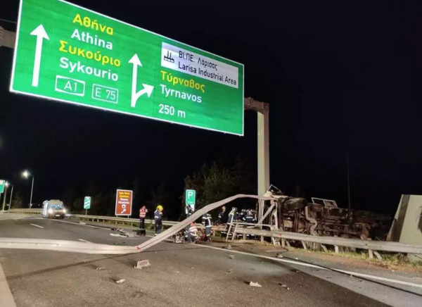 Συγκεκριμένα, το τροχαίο στη Λάρισα σημειώθηκε όταν η νταλίκα που κινούνταν στην Εθνική οδό στο ρεύμα προς Αθήνα για άγνωστο μέχρι στιγμής λόγο βγήκε από την πορεία της και στο ύψος του κόμβου Γυρτώνης «καρφώθηκε» σε μια κολόνα.