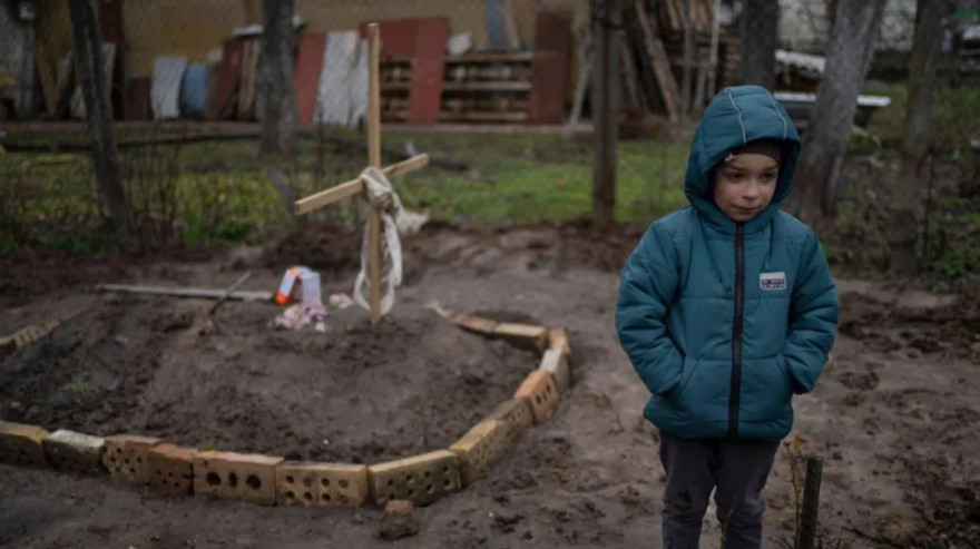 Η φωτογραφία δείχνει τον βουβό πόνο ενός 6χρονου παιδιού που μέχρι πριν από λίγες ώρες κούρνιαζε στην αγκαλιά της μητέρας του και ένιωθε ασφαλές, την ώρα που έσκαγαν οι βόμβες γύρω. Τώρα δεν μπορεί να το κάνει. Η μητέρα του είναι νεκρή. Στην πόλη Μπούκα στην Ουκρανία.