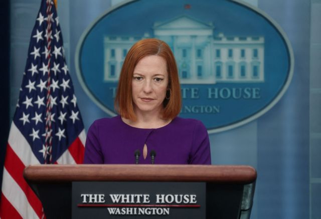 Στο πλαίσιο των νέων κυρώσεων σε βάρος της Μόσχας εξαιτίας της εισβολής στην Ουκρανία, η κυβέρνηση των ΗΠΑ σκοπεύει να απαγορεύσει «όλες τις νέες επενδύσεις» στη Ρωσία, ανακοίνωσε η εκπρόσωπος του Λευκού Οίκου (φωτογραφία, επάνω, από Reuters/Leah Millis).