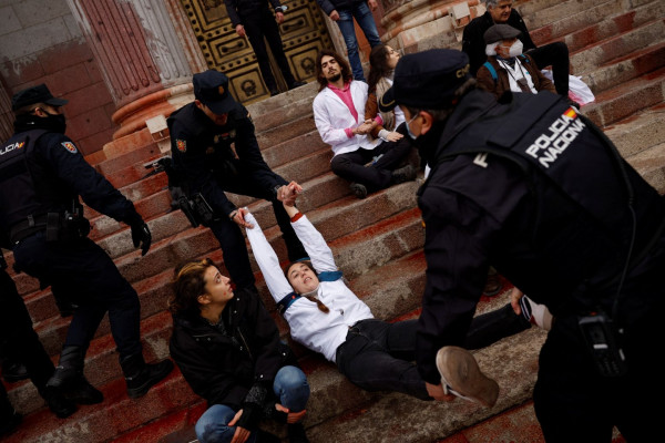 Στη Μαδρίτη, ακτιβιστές πέταξαν κόκκινη μπογιά στο Κοινοβούλιο (Reuters)