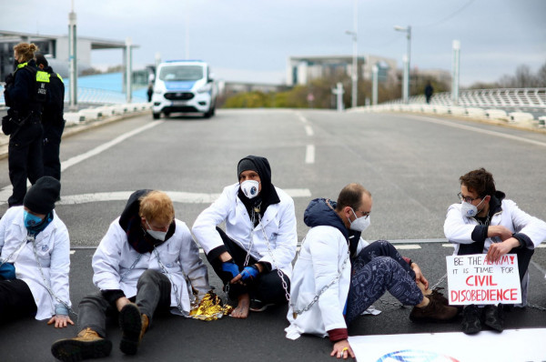 Αρκετές ακόμα διαδηλώσεις των «Scientist Rebellion» πραγματοποιήθηκαν αυτή την εβδομάδα από τους Extinction Rebellion. Στο Βερολίνο, επιστήμονες κόλλησαν τα χέρια τους στην άσφαλτο για να μπλοκάρουν μια γέφυρα, ενώ στη Μαδρίτη διαδηλωτές πέταξαν κόκκινη μπογιά στα σκαλιά του Κοινοβουλίου. Στο Λονδίνο, ακτιβιστές έριξαν ψεύτικο πετρέλαιο στα κεντρικά γραφεία της Shell, ενώ στο Σίδνεϊ ένας καθηγητής βιολογίας συνελήφθη μαζί με τέσσερα ακόμα άτομα αφότου ξάπλωσαν στο έδαφος για να κλείσουν έναν δρόμο υπό βροχή. Και στην Ουάσιγκτον, διαδηλωτές αλυσοδέθηκαν στον φράχτη που περιβάλλει τον Λευκό Οίκο.