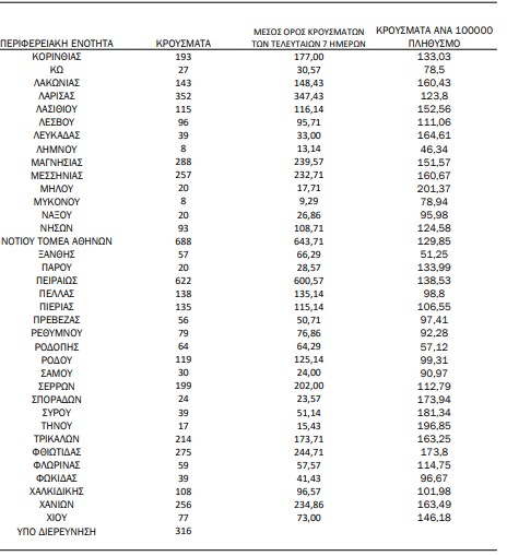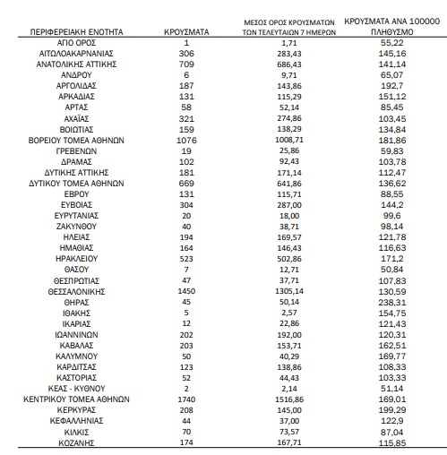 Μόνο στο κέντρο της Αθήνας εντοπίστηκαν 1.740 κρούσματα, ενώ και ο Βόρειος Τομέας Αθηνών καταγράφει τετραψήφιο αριθμό κρουσμάτων.