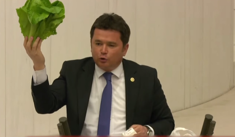 Η κατάσταση που βιώνουν καθημερινά οι πολίτες προκάλεσε την αντίδραση βουλευτών της αντιπολίτευσης που επιτέθηκαν στον Ρετζέπ Ταγίπ Ερντογάν, κουνώντας αγγούρια, μαρούλια, ντομάτες και μελιτζάνες στην αίθουσα της ολομέλειας του τουρκικού κοινοβουλίου.