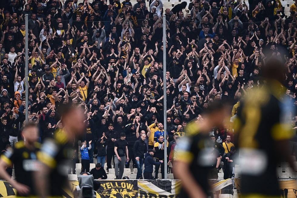 Με το σφύριγμα της λήξης οι οπαδοί της ΑΕΚ αποδοκίμασαν άγρια την ομάδα τους που παραμένει χωρίς νίκη μετά από τέσσερις αγωνιστικές στο μίνι πρωτάθλημα και πλέον είναι με την πλάτη στον τοίχο για την τρίτη θέση.