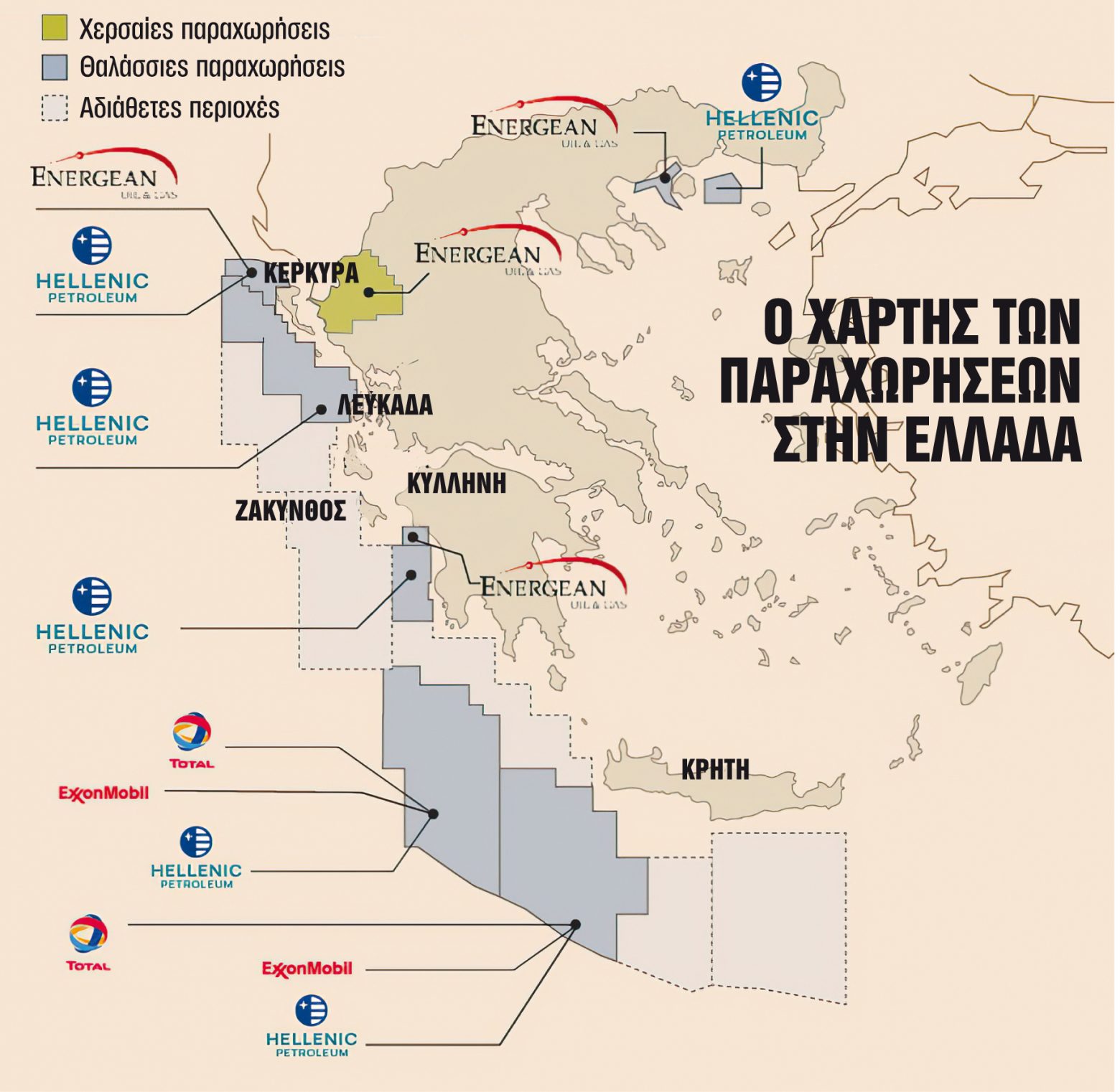 Η Energean έχει μόνη της τις χερσαίες περιοχές «Ιωάννινα» και «Κατάκολο».