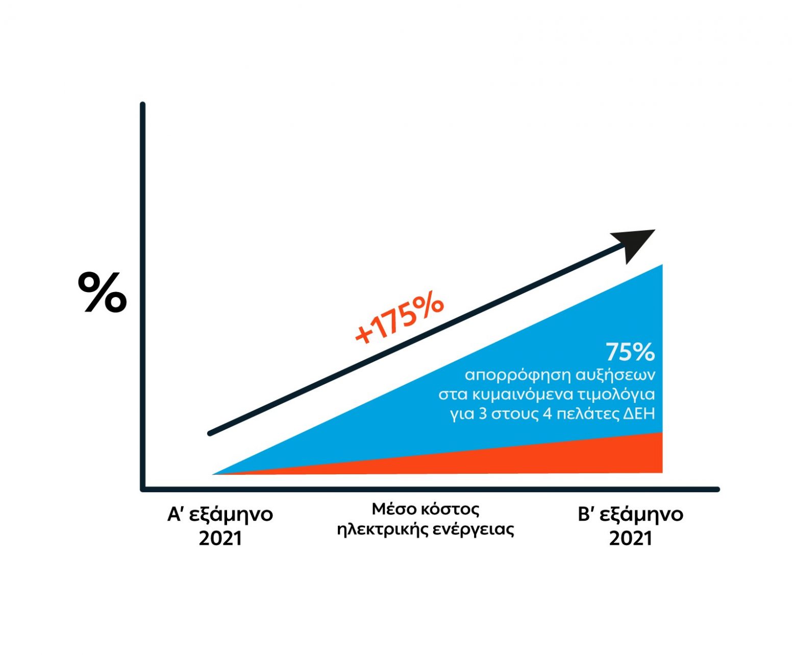 Με τα μέτρα που έχει λάβει η ΔΕΗ και την κρατική ενίσχυση, έχει απορροφηθεί το 75% των αυξήσεων στα κυμαινόμενα τιμολόγια για 3 στους 4 πελάτες.