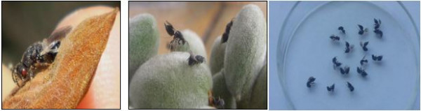 Το ευρύτομο είναι ο σημαντικότερος εχθρός της αμυγδαλιάς, έχει μία γενεά το έτος και προκαλεί μεγάλη απώλεια της παραγωγής. Μοιάζει με μαύρο φτερωτό μυρμήγκι, διαχειμάζει ως ανεπτυγμένη προνύμφη μέσα στα προσβεβλημένα αμύγδαλα, πού συνήθως παραμένουν μουμιοποιημένα στο δένδρο.