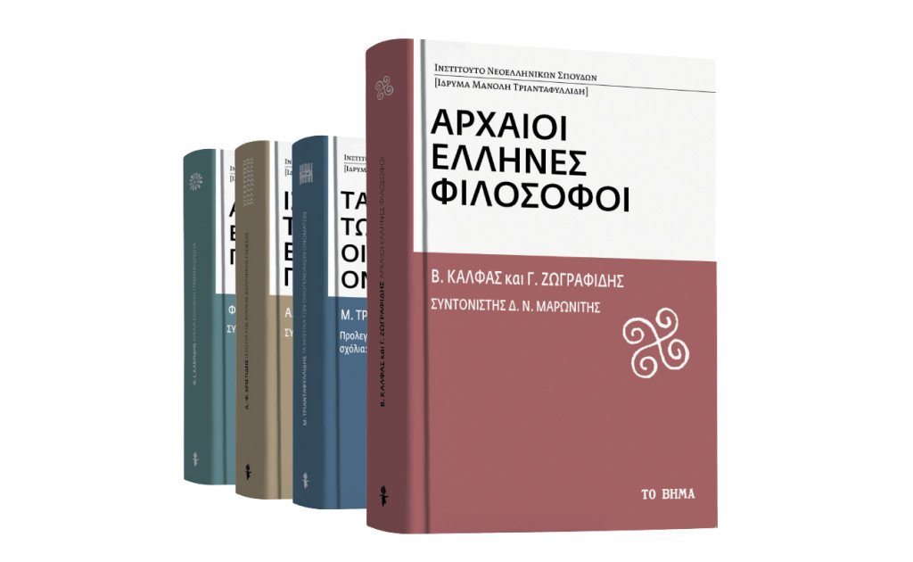 Αυτή την εβδομάδα η «Αρχαία ελληνική γραμματολογία» oι «Αρχαίοι Ελληνες φιλόσοφοι» των Βασίλη Κάλφα και Γιώργου Ζωγραφίδη καλύπτουν έξι συν έξι αιώνες, με σημείο τομής την εμφάνιση του χριστιανισμού. Το γεωγραφικό του φάσμα εκτείνεται στην οικουμένη της εποχής. Φιλοσοφικός στοχασμός και φιλοσοφικός βίος αποτελούν τους δύο άξονες περιστροφής του εγχειριδίου. «Πότε η αρχαία ελληνική φιλοσοφία σταματά να είναι ελληνική; Πότε να είναι αρχαία; Πότε να είναι φιλοσοφία;», Τα «προκλητικά» αυτά ερωτήματα σφραγίζουν το εγχειρίδιο.