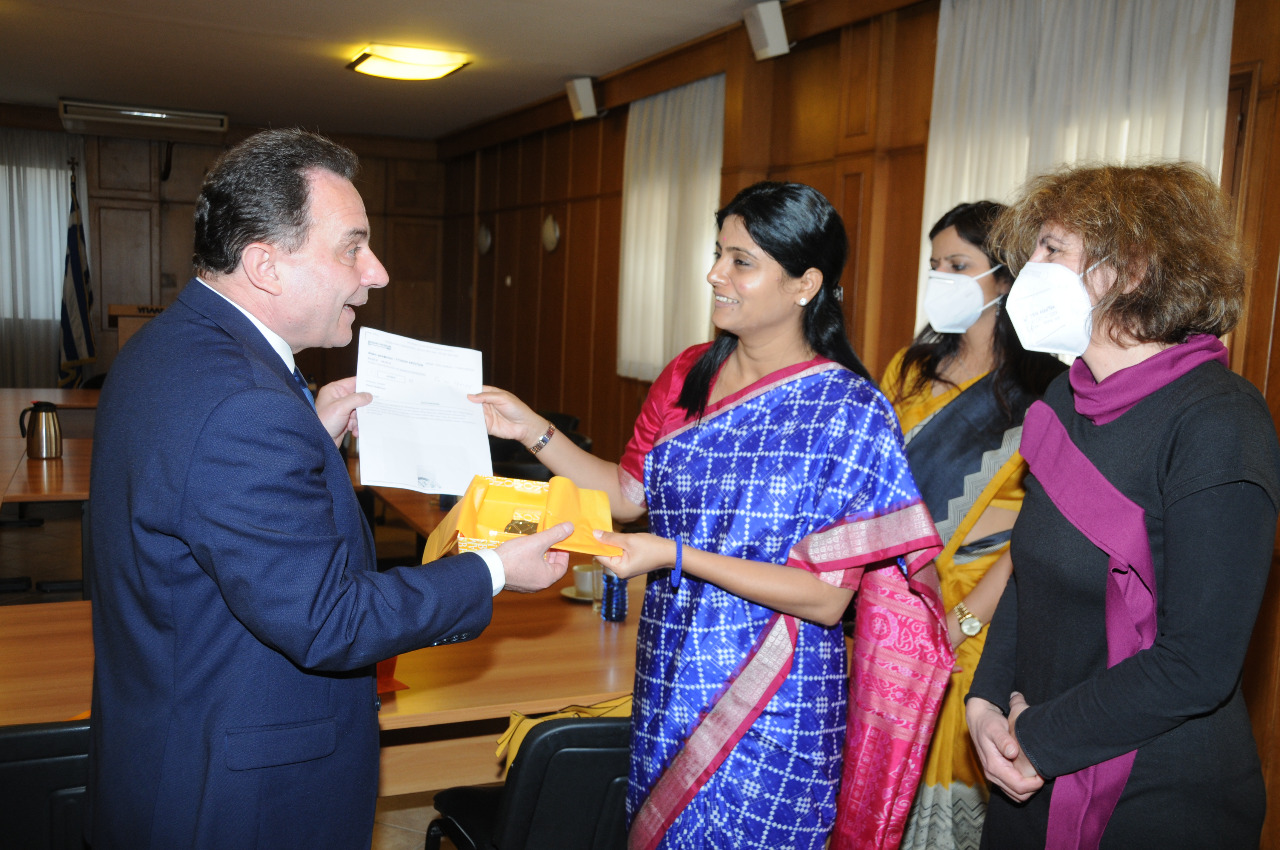 Η υπουργός συνοδευόταν από τον πρέσβη της Ινδίας στη χώρας μας, ενώ στη σύσκεψη συμμετείχε και ο γ.γ του υπουργείου κ. Κώστας Μπαγινέτας.