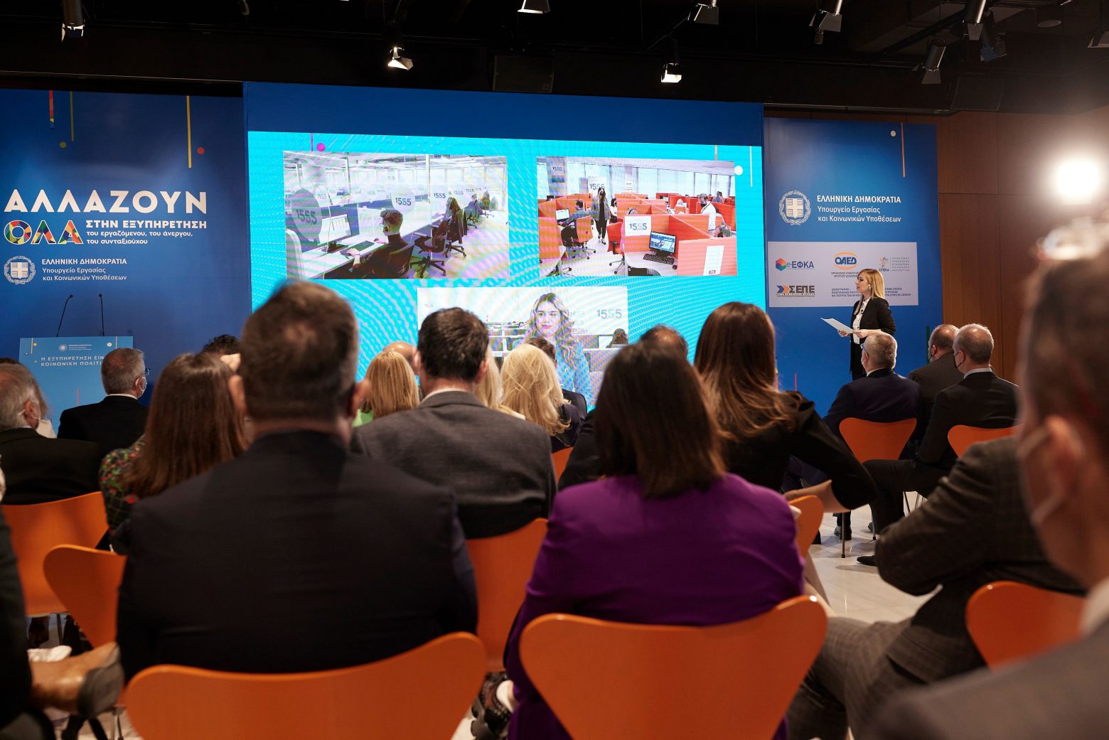 Παρουσιάστηκαν επίσης τα νεότερα κανάλια επικοινωνίας του κράτους με τον πολίτη, όπως οι υπηρεσίες myOAEDlive και myEFKAlive που προσφέρουν τη δυνατότητα εξ αποστάσεως εξυπηρέτησης μέσω βιντεοκλήσης (υπηρεσίες πολύτιμες ειδικά για ΑμΕΑ, κατοίκους απομακρυσμένων, ορεινών ή νησιωτικών περιοχών), ο νέος θεσμός των ηλεκτρονικών ραντεβού αλλά και οι καρποί της συνεργασίας του ΕΦΚΑ και του ΟΑΕΔ με τα Κέντρα Εξυπηρέτησης Πολιτών, μέσω των οποίων έχουν γίνει 2,5 εκατομμύρια συναλλαγές.