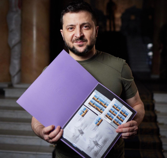 Ο Ζελένσκι κρατά με… καμάρι το γραμματόσημο