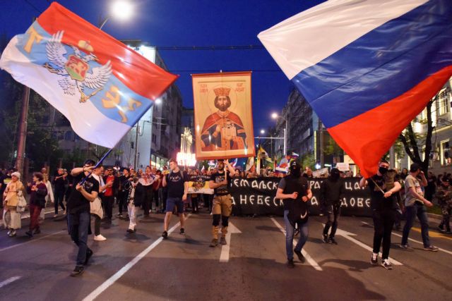 Χιλιάδες Σέρβοι, ανεμίζοντας ρωσικές και σερβικές σημαίες και κρατώντας αφίσες του Βλαντίμιρ Πούτιν, πραγματοποίησαν χθες Παρασκευή πορεία στο κέντρο του Βελιγραδίου και συγκεντρώθηκαν έξω από την πρεσβεία της Ρωσίας για να εκφράσουν την αντίθεσή τους στην προσπάθεια της κυβέρνησής τους να κρατήσει αποστάσεις από τη Μόσχα όσον αφορά στη ρωσική εισβολή στην Ουκρανία.