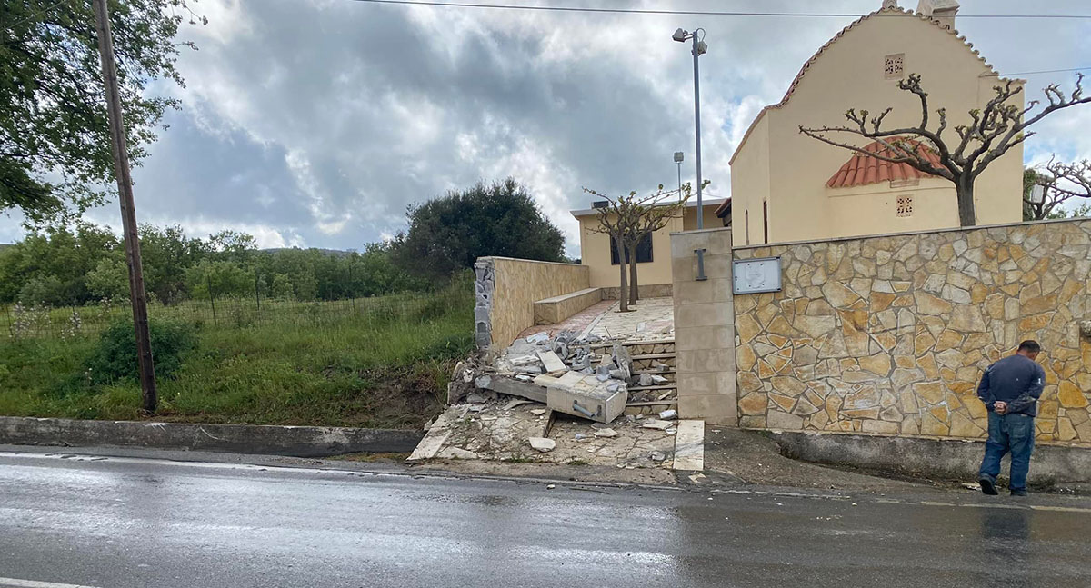Ρέθυμνο: Αυτοκίνητο προσέκρουσε σε εκκλησία – Ζημιές στην είσοδο του Ναού