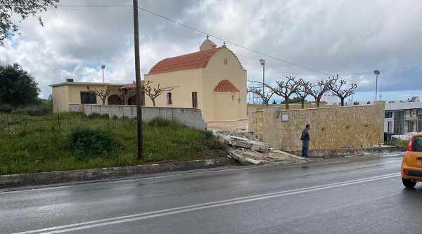 Σύμφωνα με πληροφορίες του cretapost, έχει καταστραφεί ένα μέρος του μπροστινού τοίχου, καθώς και η σκάλα που οδηγεί στο ναό.
