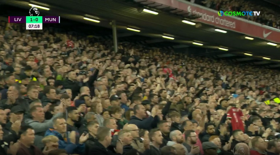 Τρομερές σκηνές στο 7ο λεπτό του ντέρμπι της Λίβερπουλ με τη Μάντσεστερ Γιουνάιτεντ στο Άνφιλντ,