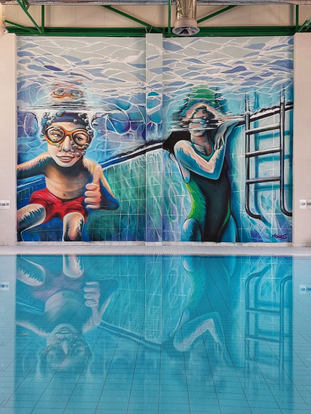 Το έργο φιλοτεχνήθηκε από τον γνωστό street artist Αχιλλέα γνωστός και ως Mister.Achilles και αποτελεί μια εντυπωσιακή σε μέγεθος, χαρούμενη εικαστική παρέμβαση, έναν ύμνο στις μικρές χαρές της ζωής, την επαφή με το υγρό στοιχείο και την άθληση.