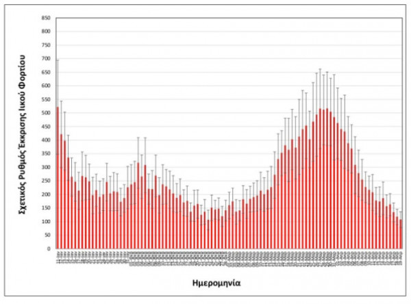 Όπως φαίνεται στα διαγράμματα που παρουσιάζει το ΑΠΕ-ΜΠΕ, έπειτα από ολιγοήμερη τάση σταθεροποίησης του ιικού φορτίου των λυμάτων, στις τρεις τελευταίες ημερήσιες μετρήσεις καταγράφεται πτωτική πορεία του.