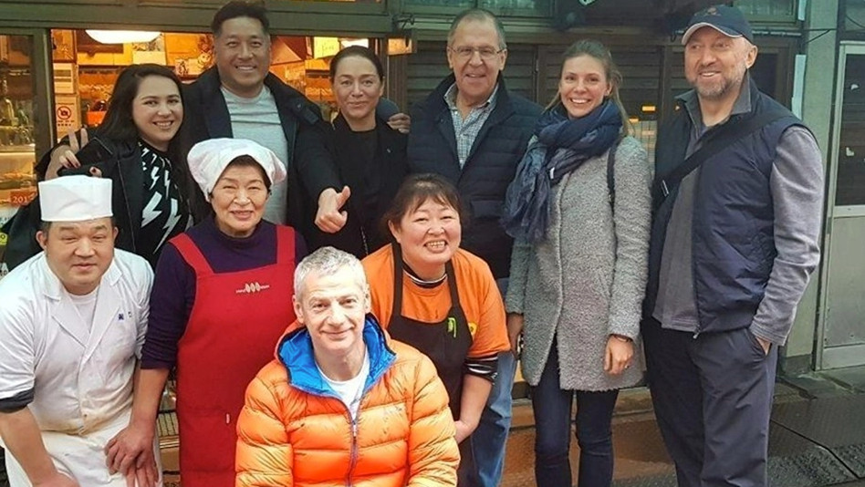 Η φωτογραφία είναι τραβηγμένη από το επίσημο ταξίδι του Ρώσου υπουργού Εξωτερικών Σεργκέι Λαβρόφ, στην Ιαπωνία. Είναι έξω από ένα εστιατόριο στο Τόκιο και μαζί του βρίσκεται η ερωμένη του Σβετλάνα Πολιάκοβα (που εργάζεται πλέον και αυτή στο υπουργείο Εξωτερικών) ένας πρώην ιδιοκτήτης στριπτιζάδικου, ένας Ρώσος ολιγάρχης που πλέον έχει υποστεί κυρώσεις, ένας επιχειρηματίας από την Ταιβάν και μια πανέμορφη συνοδός πολυτελείας.