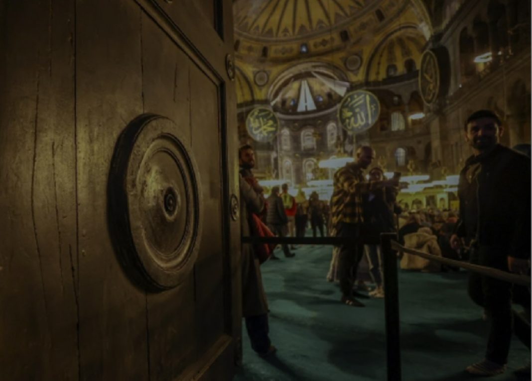 Τα τουρκικά μέσα ενημέρωσης προβάλλουν σήμερα την εικόνα της αυτοκρατορικής πύλης στην Αγία Σοφία όπου έχει αποκατασταθεί η καταστροφή που είχε προκληθεί σε τμήμα της ιστορικής θύρας.