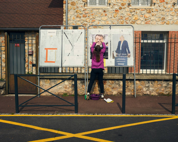 Η περιοδεία συνεχίζεται με τον ίδιο ρυθμό. Μπροστά από ένα γραφείο, μια μητέρα φωτογραφίζει το χαμόγελο της μικρής της κόρης, κρατώντας μια κάρτα ψηφοφόρου. Ένας άλλος μπαίνει με τρεις εφήβους, όλοι ντυμένοι με ναυτικά σακάκια. Αυτή τη φορά, η Barbara Collet μετράει την προσέλευση.