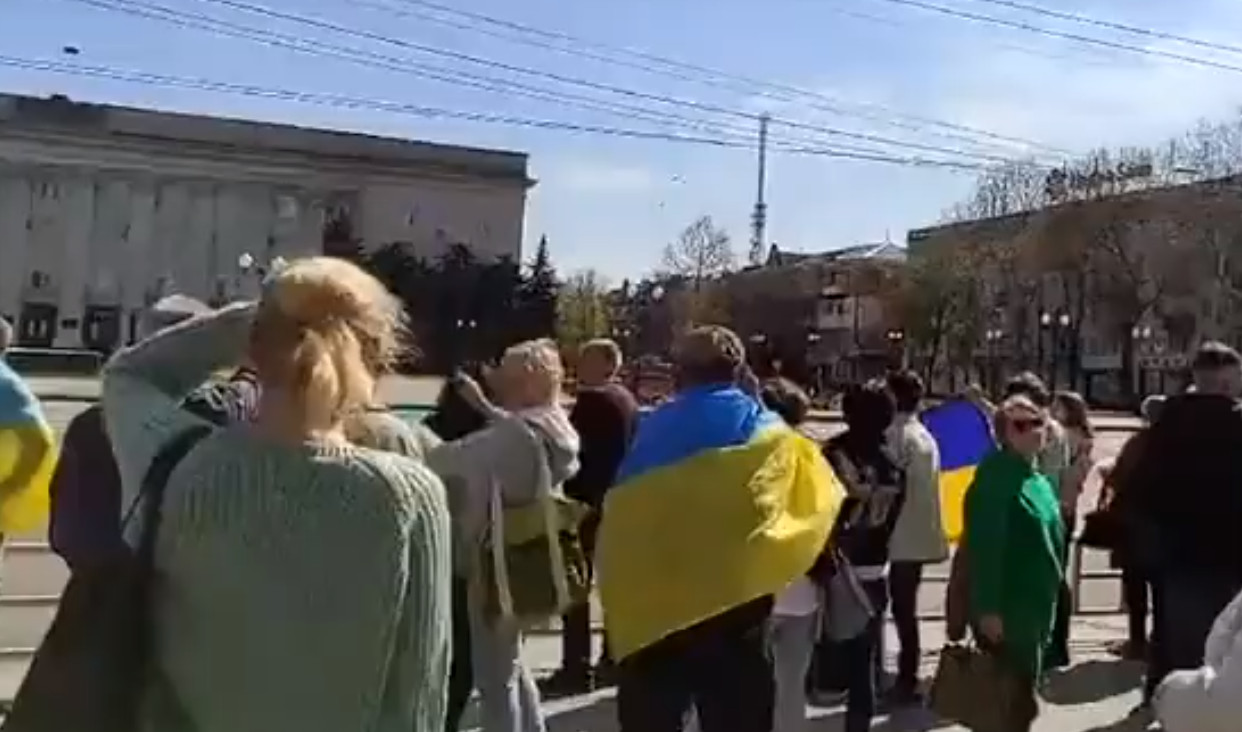 Ορισμένοι κάτοικοι οργανώνουν κατά καιρούς αντικατοχικές διαδηλώσεις και ένα πλήθος συγκεντρώθηκε και πάλι σήμερα στο κέντρο της πόλης. Το Κίεβο υποστήριζε ότι σήμερα η Ρωσία σκόπευε να διοργανώσει «δημοψήφισμα» για να αποσχισθεί η περιφέρεια της Χερσώνας από την Ουκρανία, όπως εκείνες του Λουχάνσκ και του Ντονέτσκ.