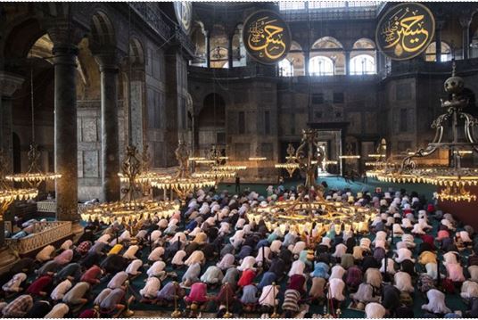 Οι πιστοί οπαδοί του Ερντογάν λοιπόν σύμφωνα με εφημερίδες και άλλα ΜΜΕ της Τουρκίας προχωρούν με καλπάζουσα αδιαντροπία σε πράξεις βανδαλισμού και ιεροσυλίας στο κορυφαίο σύμβολο πολιτιστικής βυζαντινής κληρονομιάς, δηλαδή στον Ιουστινιάνειο ναό της, της του Θεού Σοφίας.