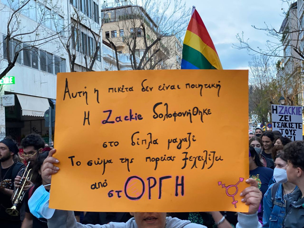 «Δεν ξεχνάμε – δεν συγχωρούμε τη δολοφονία του Ζακ Κωστόπουλου/ Zackie-oh!, την προσπάθεια συγκάλυψης της από τα ΜΜΕ και τους θεσμούς, τη σκύλευση της ταυτότητας του Ζακ ως ομοφυλόφιλου, μέλους της lgbtqi κοινότητας, οροθετικού και ακτιβιστή και την επιχείρηση αθώωσης των κρατικών και παρακρατικών δολοφόνων του Ζακ με την αθωωτική πρόταση του εισαγγελέα για τους μπάτσους που χτυπούσαν αιμόφυρτο και δεμένο με χειροπέδες το σώμα του Ζακ και την άρνηση μεταβολής της κατηγορίας από θανατηφόρο βλάβη σε ανθρωποκτονία για τους δολοφόνους Δημόπουλο- Χορταριά» αναφέρουν σε ανάρτησή τους σε ιστοσελίδα του αντιεξουσιαστικού χώρου.